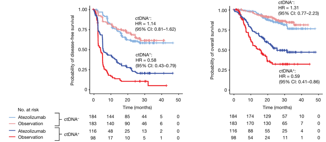 △不同ctDNA状态的患者Kaplan-Meier曲线