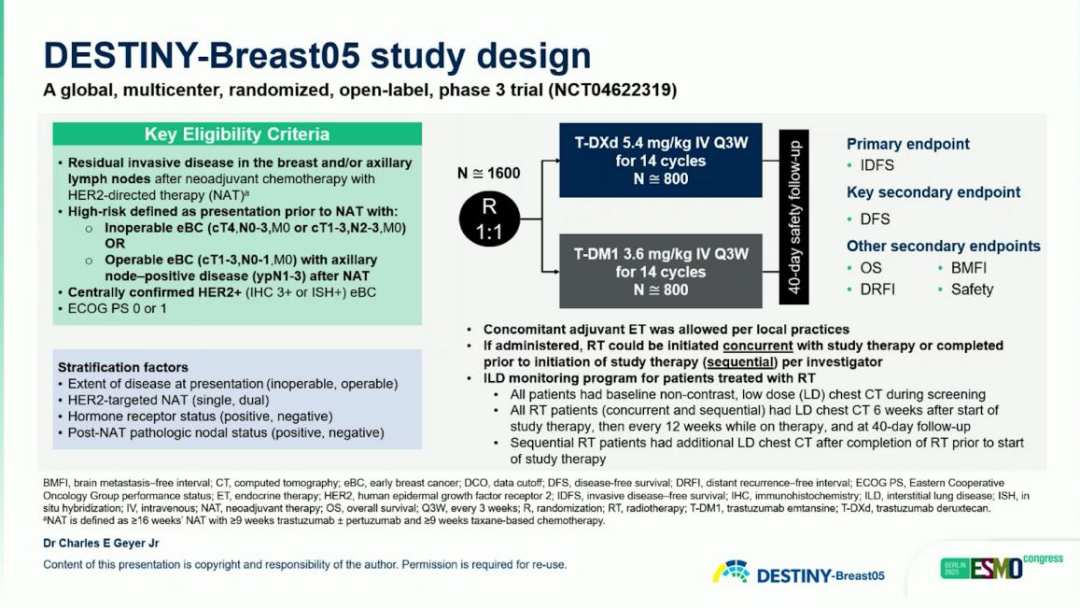 [8].Charles E.Geyer,Yeon Hee Park,Zhi-Ming Shao,et al.LBA1-Trastuzumab deruxtecan(T-DXd)vs trastuzumab emtansine(T-DM1)in patients(pts)with high-risk human epidermal growth factor receptor 2–positive(HER2+)primary breast cancer(BC)with residual invasive disease after neoadjuvant therapy(tx):Interim analysis of DESTINY-Breast05.2025 ESMO LBA1.